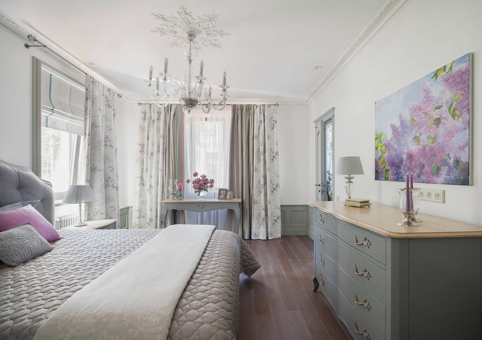 - Ouest. Dans de telles chambres, ils font un choix en faveur des nuances de gris, d'argent, de violet et de citron. L'intérieur peut être monochrome ou combiné.