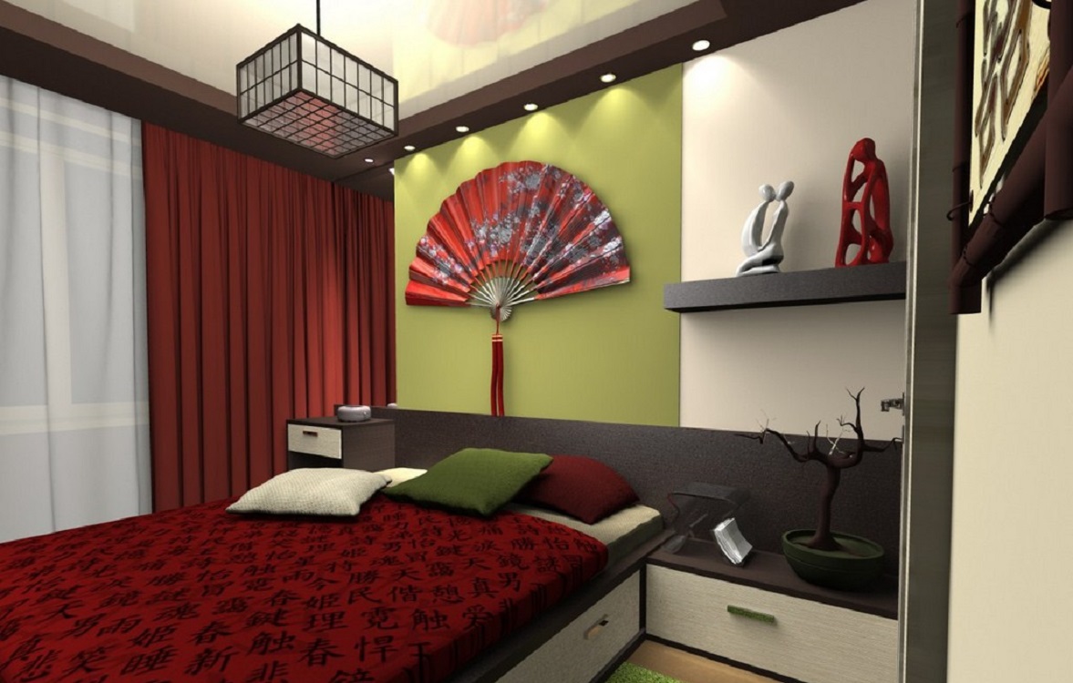 - Ventilateur. Vous pouvez accrocher un éventail chinois au mur. C'est un attribut qui attire l'énergie positive dans la pièce. On pense que cela contribue à la chance et à la réussite professionnelle.