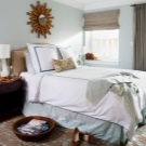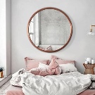 - Grand, rond, juste en face du lit. Il n'y a rien de "criminel" dans une telle décision - les couleurs claires, la forme, la décoration, le décor semblent demander qu'un tel miroir apparaisse dans ce contexte, et il est ici. Tous ensemble - harmonie solide.