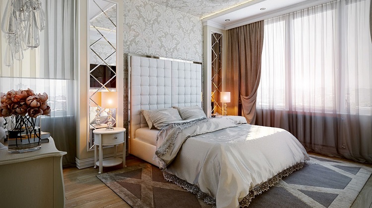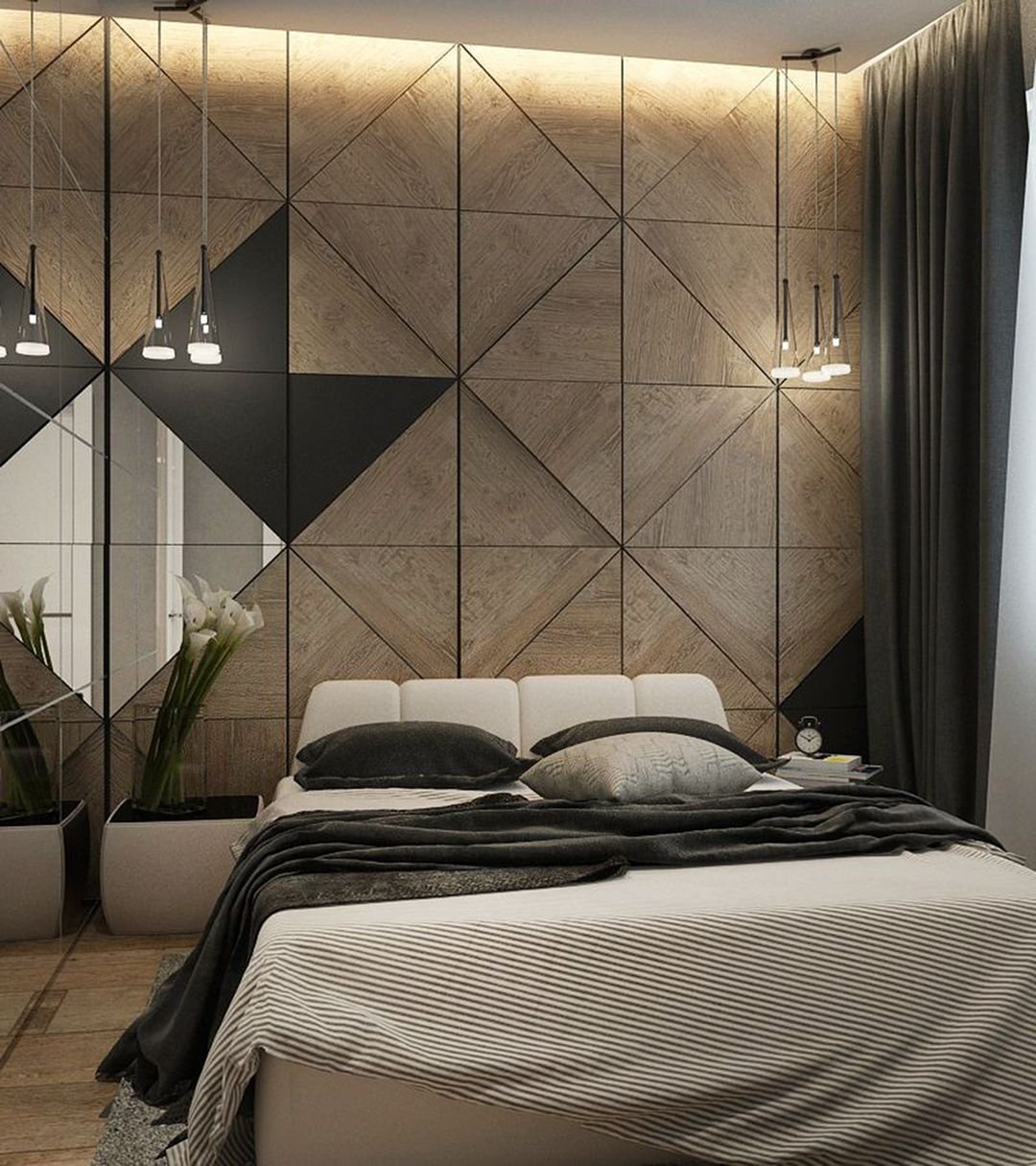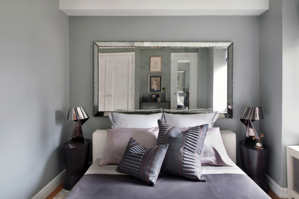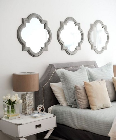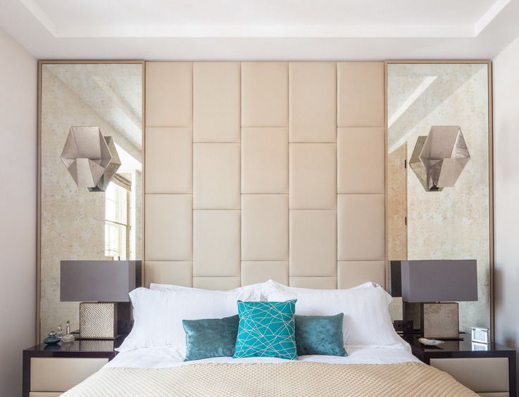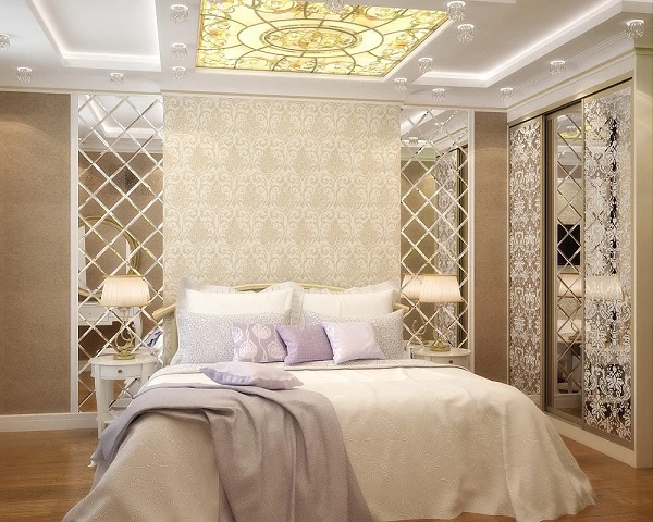 Cette variété est la plus courante et la plus disponible. Mais ici aussi, il y a beaucoup de nuances et de particularités. Par exemple, il peut y avoir deux miroirs, des deux côtés du lit, au-dessus de la table de chevet. Il a l'air particulièrement bien dans une chambre spacieuse. Et ceux qui n'aiment pas dormir devant leur reflet apprécieront cette décision.