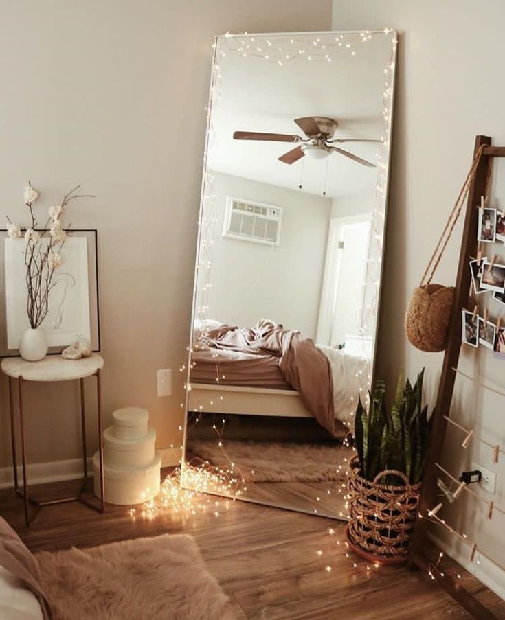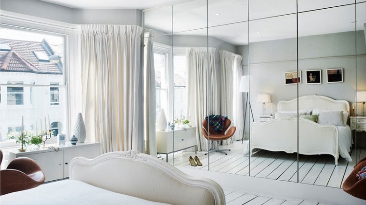 - Si vous souhaitez rendre une petite chambre plus aérée, le miroir doit être placé sur le mur auquel la tête du lit est attenante. Et la technique fonctionnera autant que possible si les sources lumineuses se reflètent dans ces miroirs.