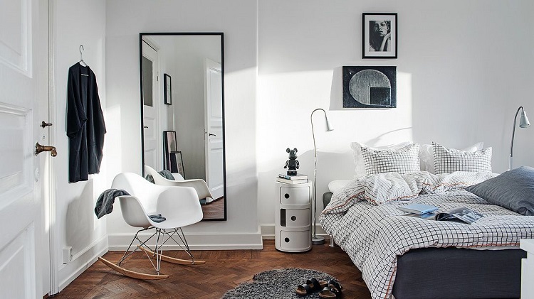 Il ne peut y avoir de consensus. Mais si la chambre est aussi un dressing et un endroit où se trouve la coiffeuse, il est difficile de se passer d'un miroir. Cela signifie que vous devez rechercher des options appropriées, belles et originales.