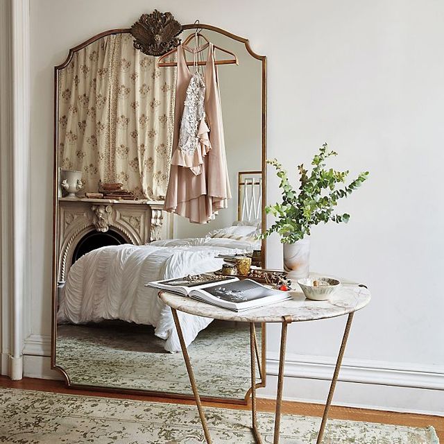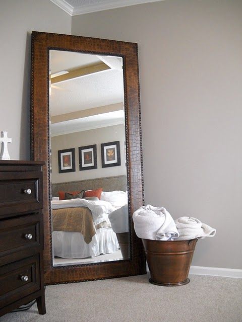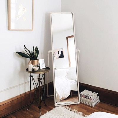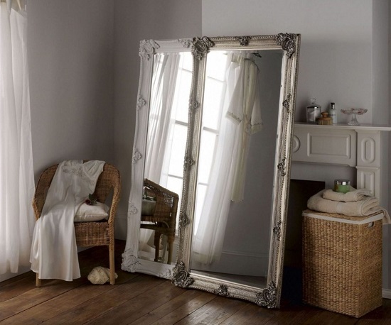 Dans les modèles de sol, il y a une sorte de sophistication, de noblesse. Si la taille de la chambre n'est pas la plus petite, le miroir posé au sol peut être dans un cadre massif ou même sur des pieds volumineux. Si la pièce est petite, les décorations inutiles doivent être jetées.