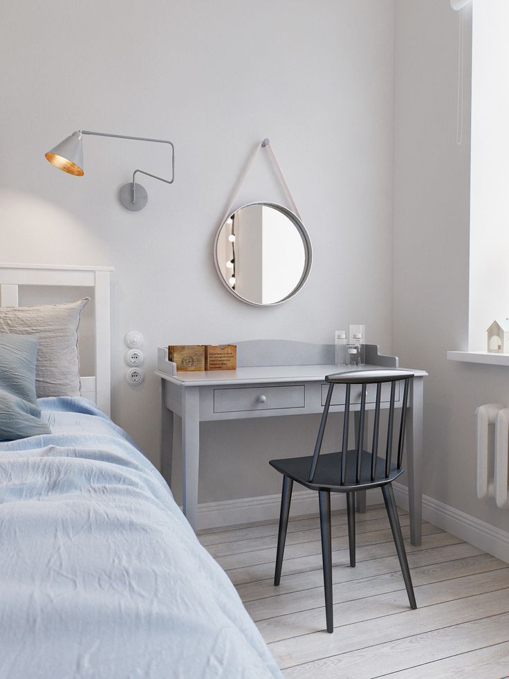 - Un petit miroir suspendu rond est un hymne aux formes simples et aux solutions laconiques. De quoi se ranger et décorer une pièce modeste et stylée.