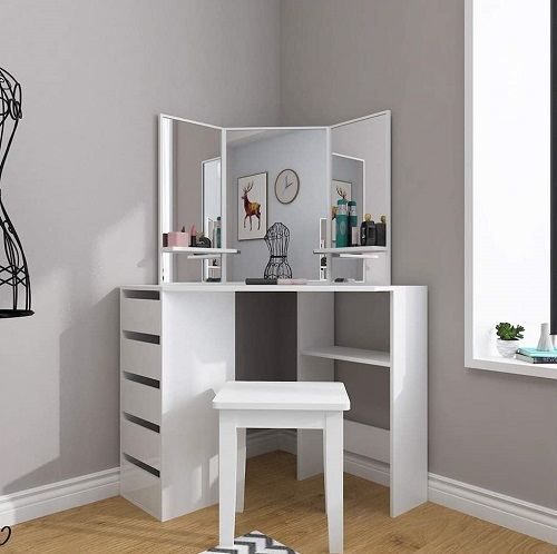 - Au dessus de la coiffeuse. Probablement l'option la plus pratique. Il faut un bon éclairage, une hauteur convenable, une forme de miroir acceptable qui ne s'ennuiera pas.