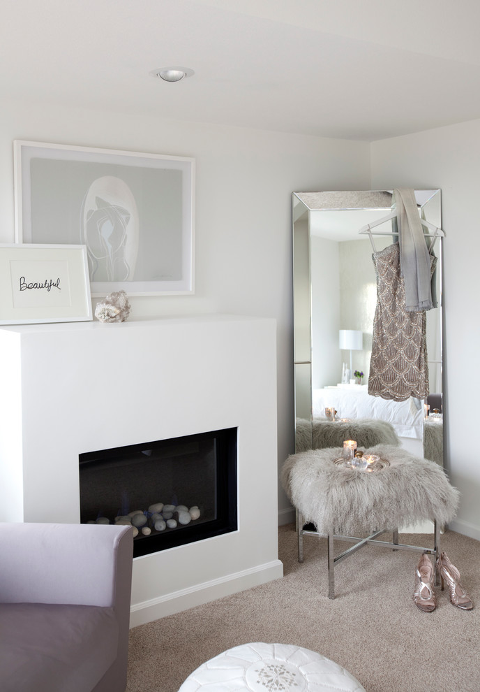 - Si la cheminée se trouve dans la chambre (et ce n'est pas si rare), les miroirs peuvent également se trouver sur le portail de la cheminée. A la fois sobre et festive : paradoxalement, mais c'est exactement l'effet qui est créé.
