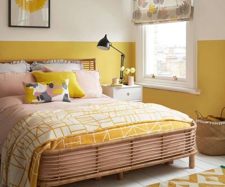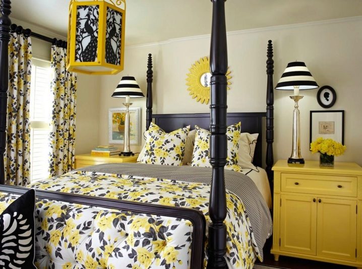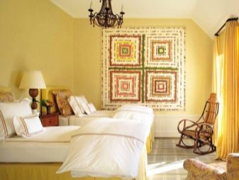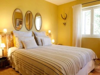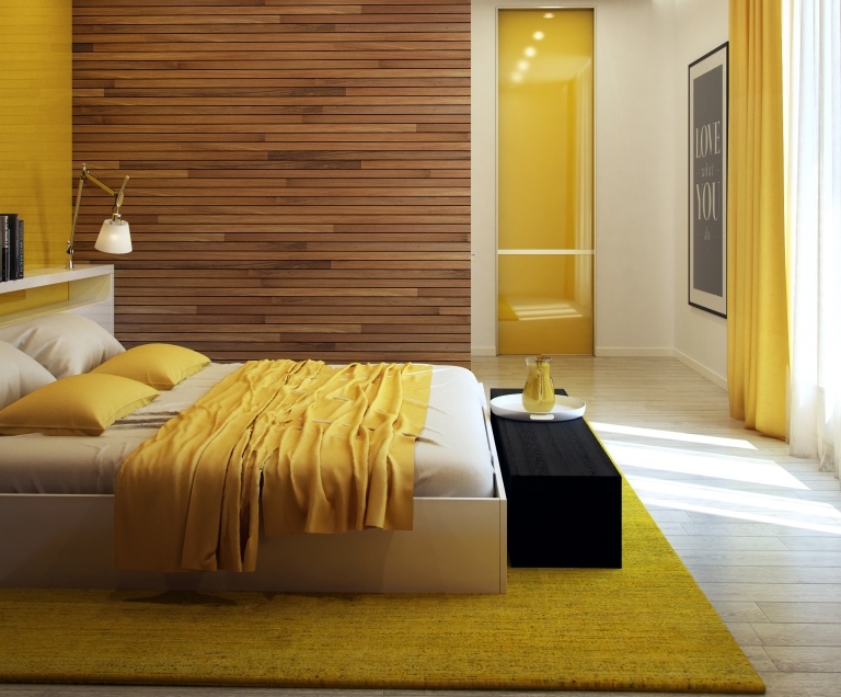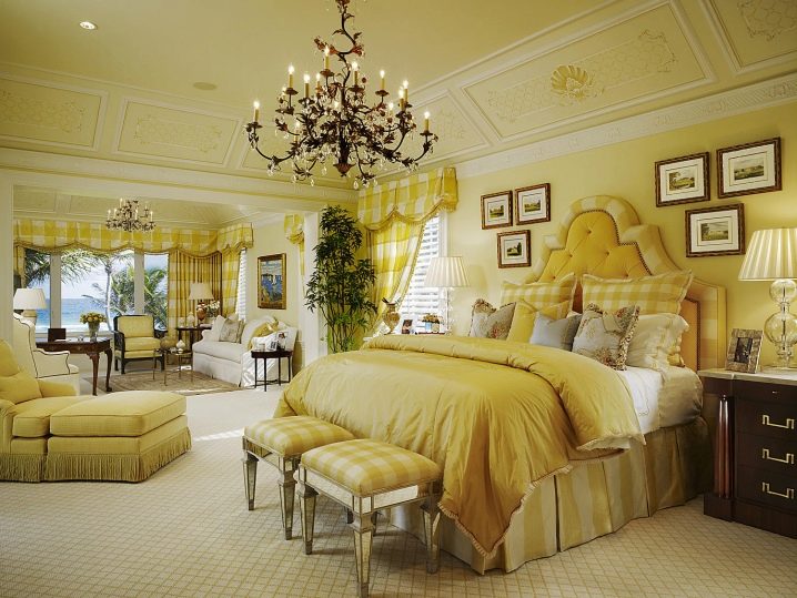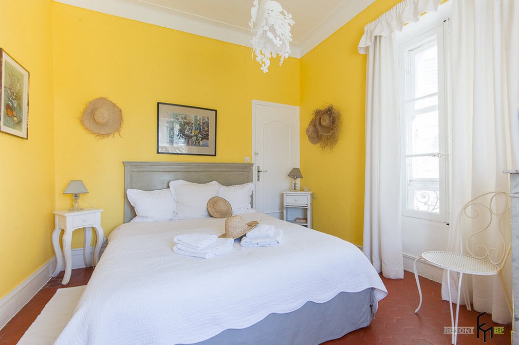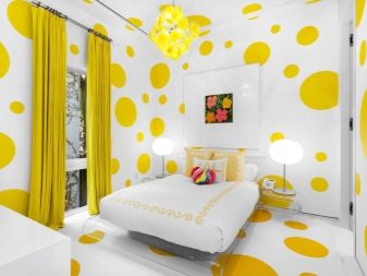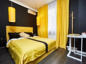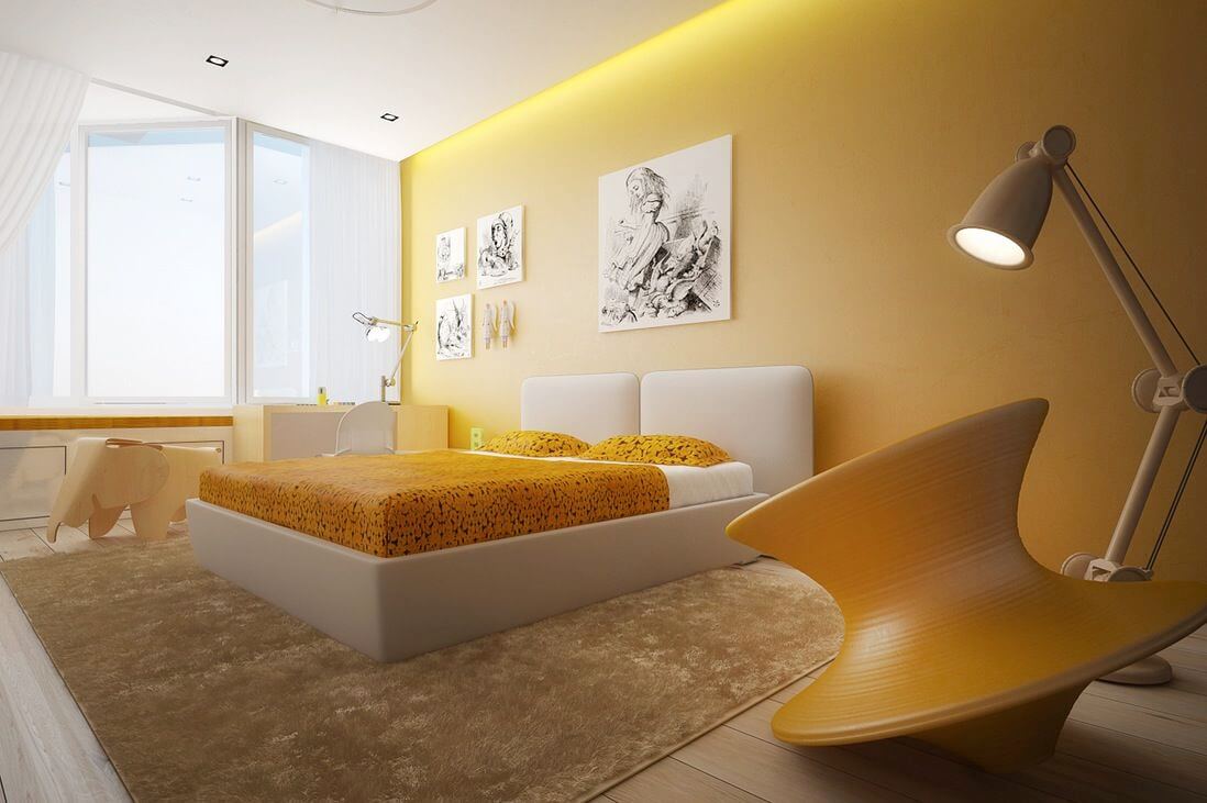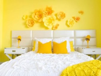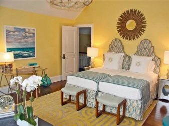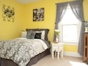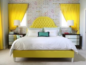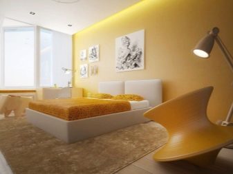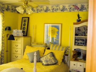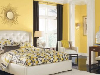 L'essentiel est de composer correctement la composition et de ne pas utiliser plus de deux ou trois nuances de jaune à l'intérieur de la chambre, afin de ne pas rendre l'atmosphère agressive et difficile à percevoir.