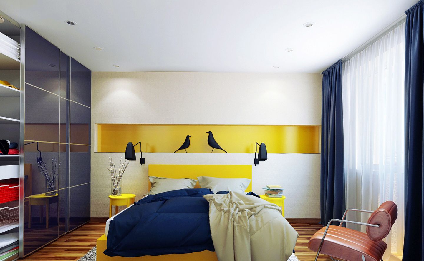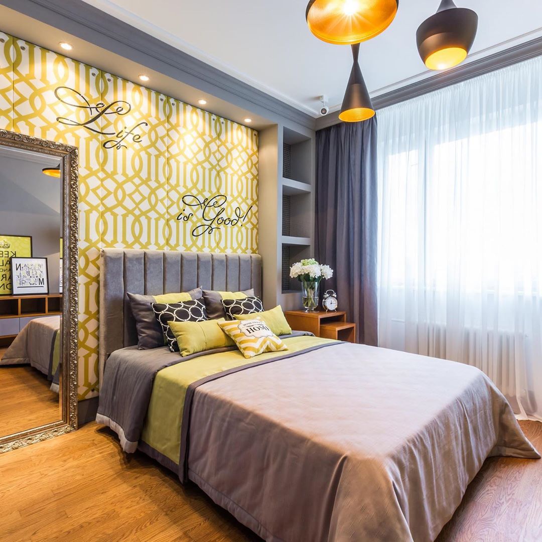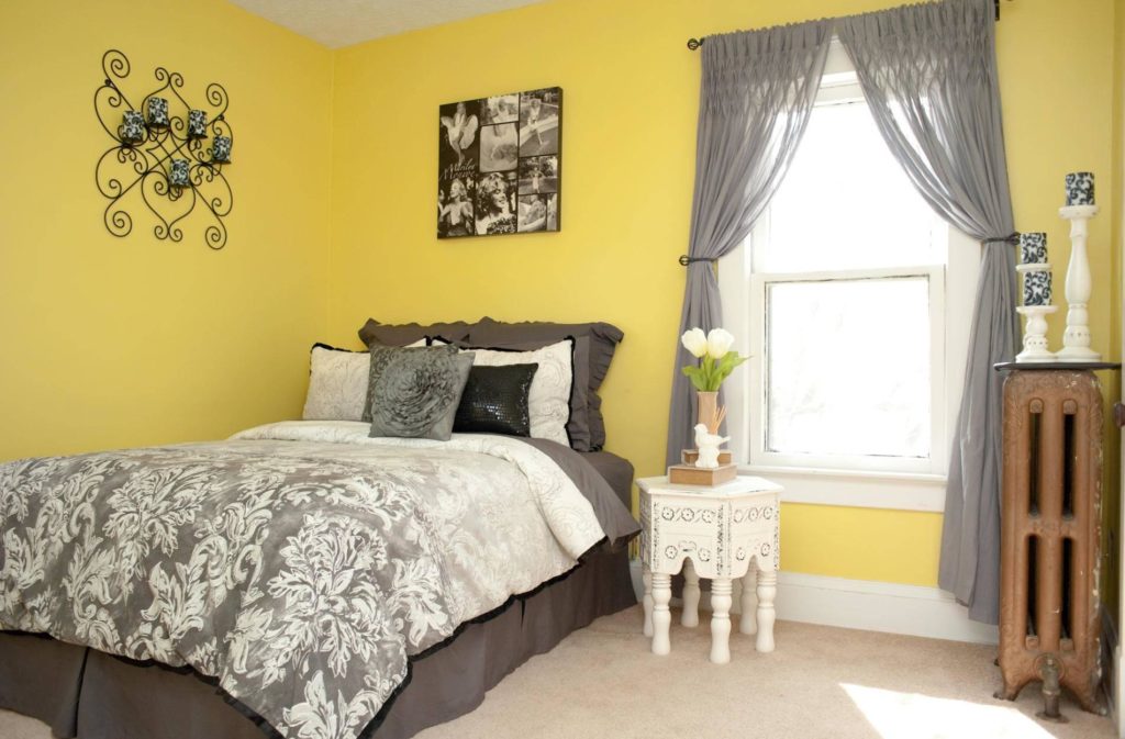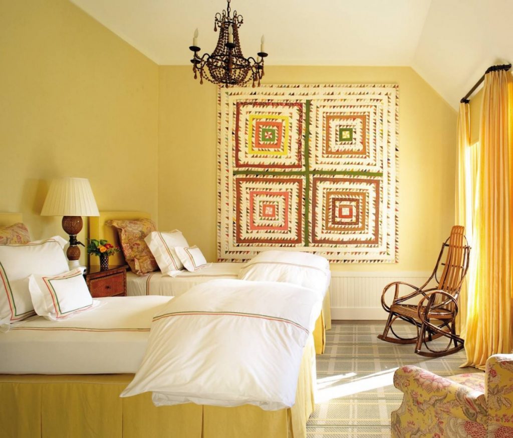 L'essentiel est de composer correctement la composition et de ne pas utiliser plus de deux ou trois nuances de jaune à l'intérieur de la chambre, afin de ne pas rendre l'atmosphère agressive et difficile à percevoir.
