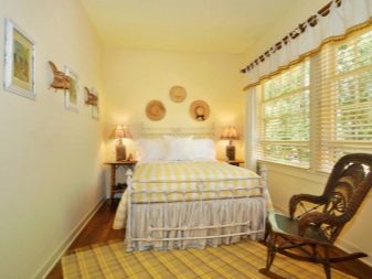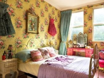 Dans la chambre, où les murs sont décorés d'un imprimé panaché, les couvre-lits et les rideaux doivent avoir des motifs similaires ou être monochromes. Sinon, la pièce sera surchargée visuellement, ce qui créera un stress psychologique.