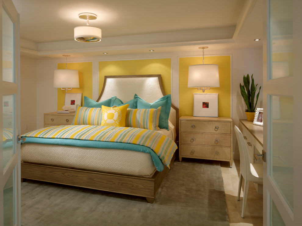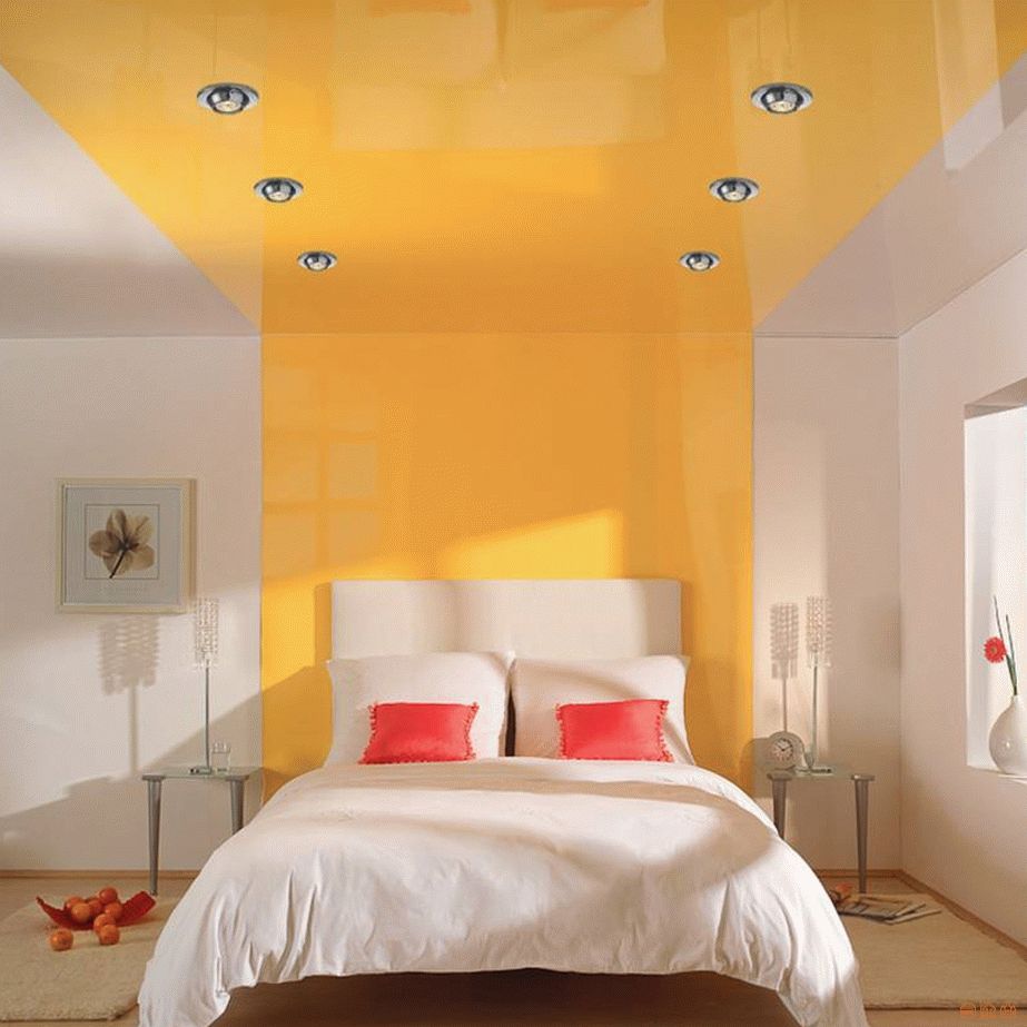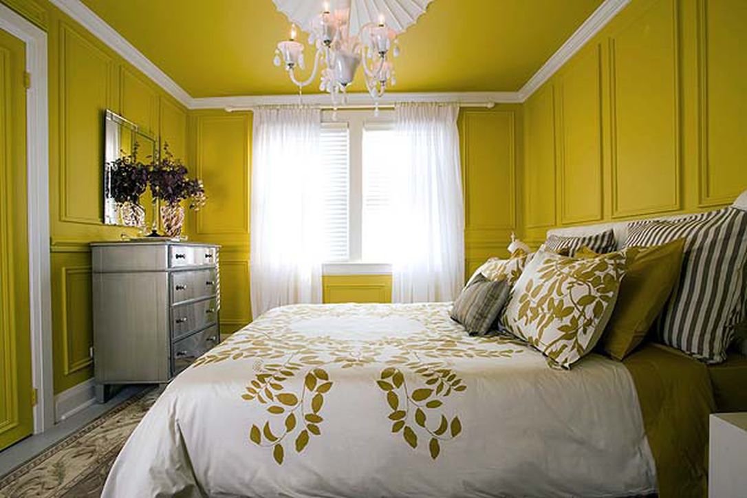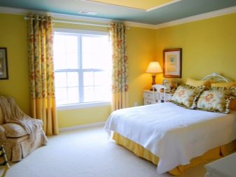 Un plafond jaune fera paraître la pièce plus haute, et en combinaison avec les mêmes murs, il agrandit visuellement l'espace, ce qui est bon pour les petites chambres.