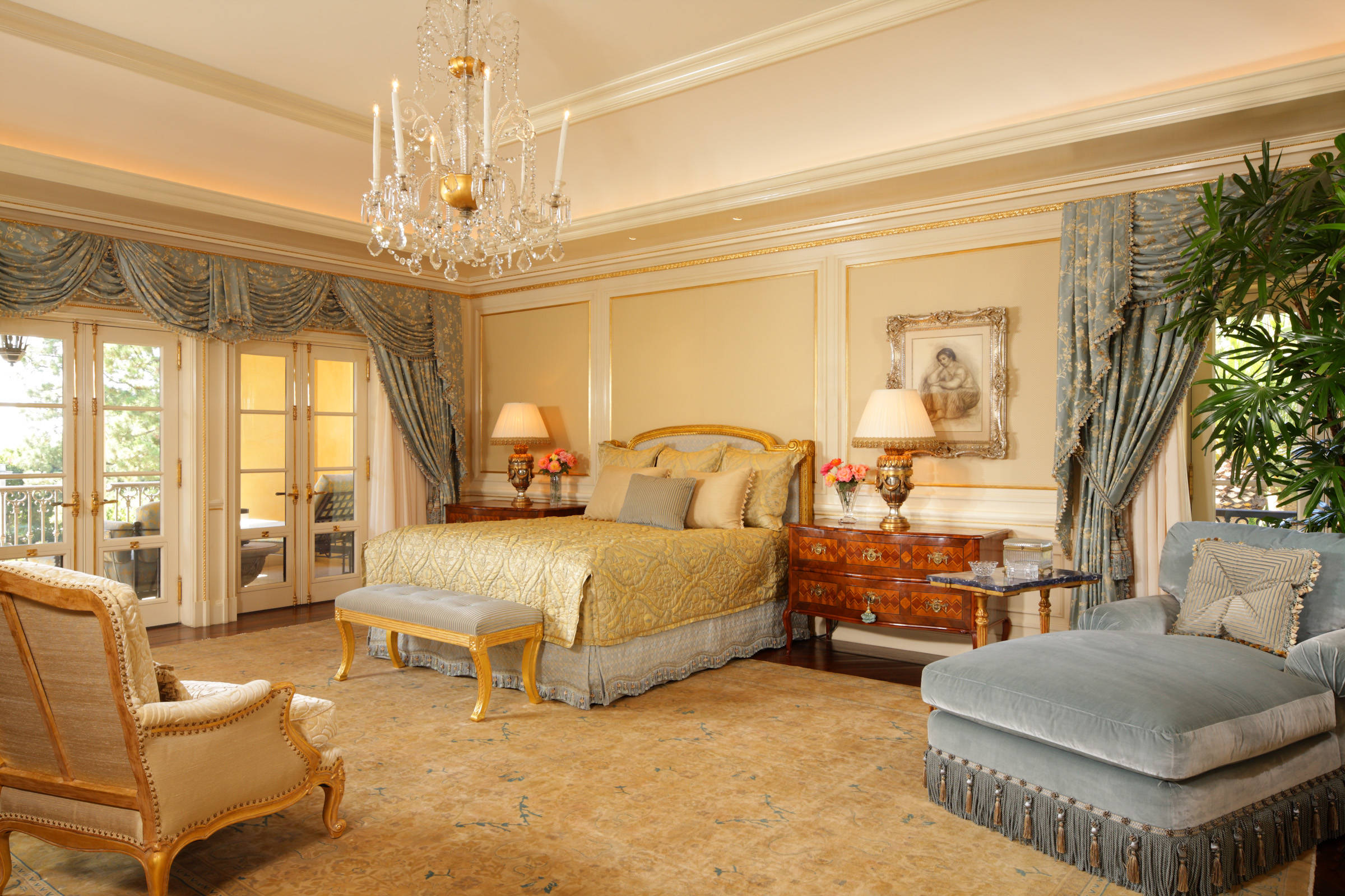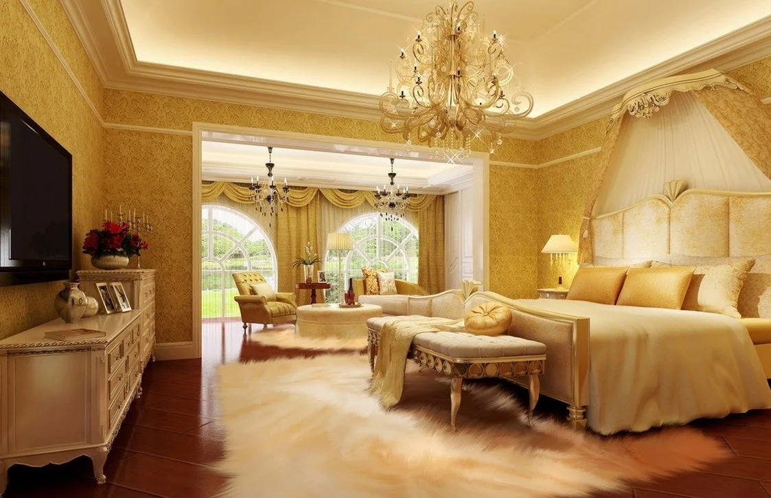 La chambre à coucher de style italien classique ravit par son design luxueux. Les chambres spacieuses de couleur sable monochrome sont confortables et chaleureuses malgré le grand espace.