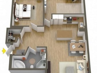 Pour un « billet de trois roubles » avec une superficie de 55 m². m il est important de répartir correctement l'espace libre et d'allouer des zones fonctionnelles. Dans un petit espace, vous pouvez facilement placer un hall d'entrée, une salle de bain, un salon, un mini-bureau, une chambre et une cuisine, en se concentrant sur les besoins des propriétaires. Si vous disposez d'une loggia, vous pouvez l'utiliser au maximum, par exemple, comme espace de stockage.