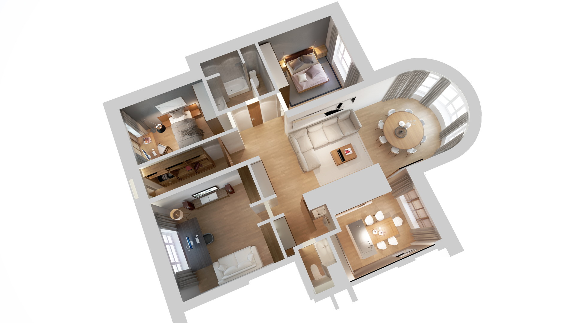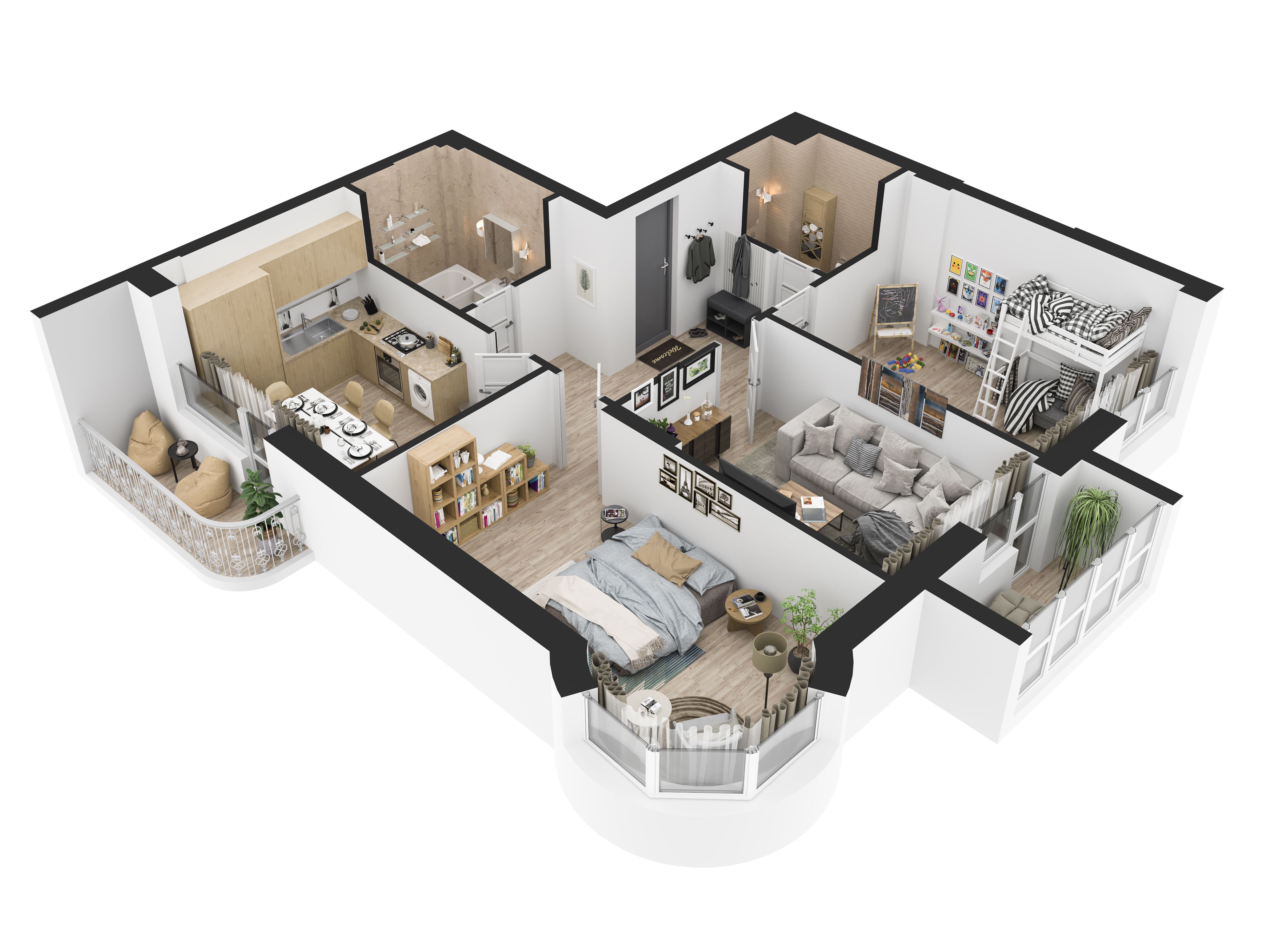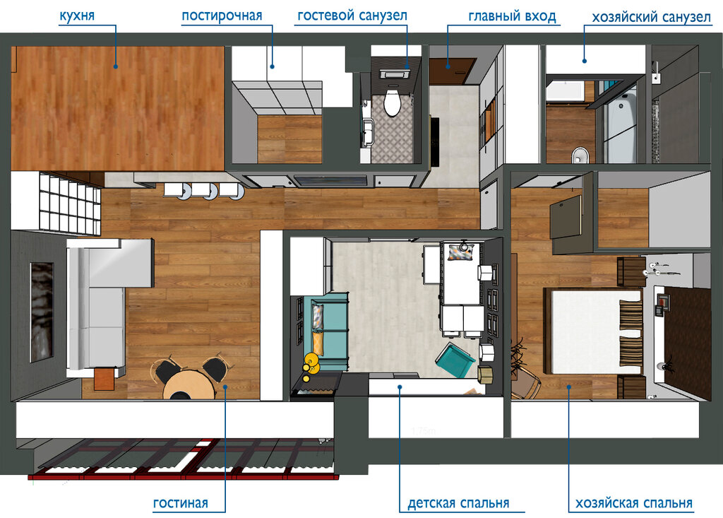 Un zonage correct vous permet de tirer le meilleur parti de l'espace de la pièce. L'aménagement futur dépend aussi de qui habitera cet appartement, afin que chacun vive dans le confort et puisse vaquer à ses occupations.