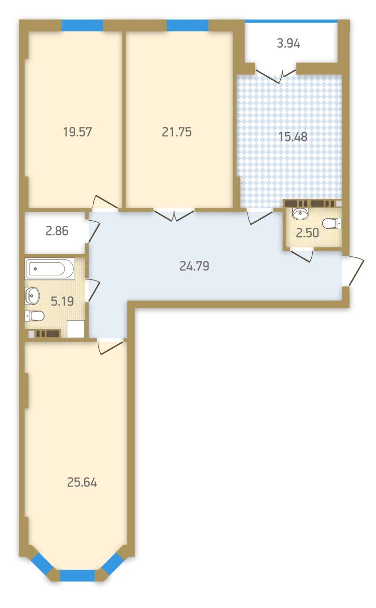 Plan d'appartement de trois pièces
