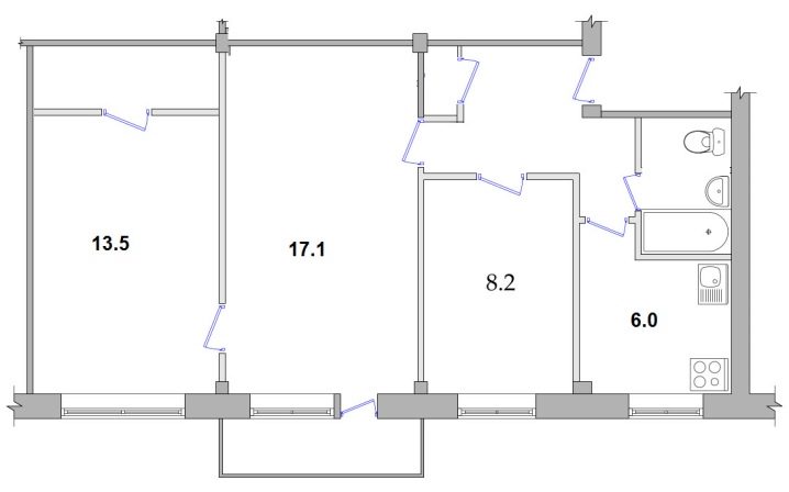 La particularité d'un appartement de 3 pièces est la présence d'un espace de passage. Les aménagements des "treshki" soviétiques diffèrent entre eux par les années de construction de la maison et les matériaux de construction utilisés. Dans une maison en briques, il y a des pièces séparées, communicantes et de passage. Souvent, les bâtiments anciens ont des murs insuffisamment épais et une salle de bain combinée à des toilettes.