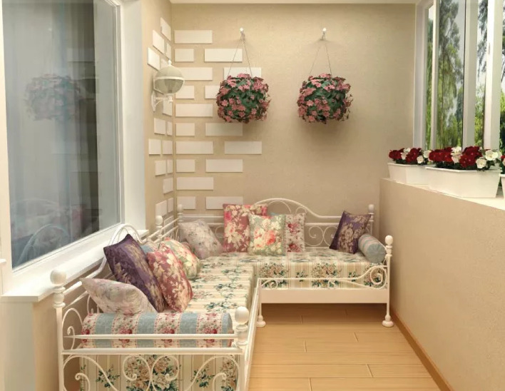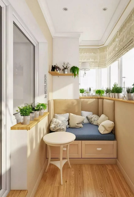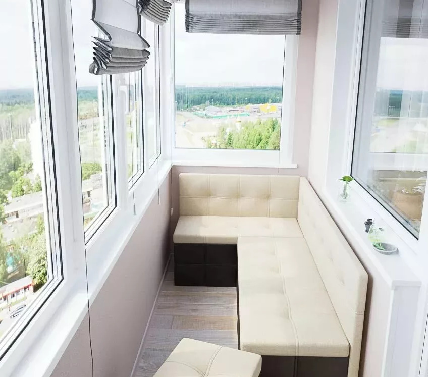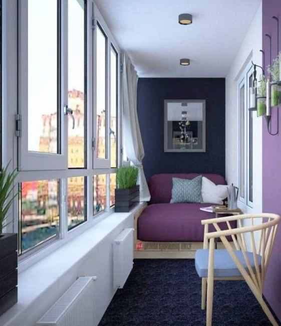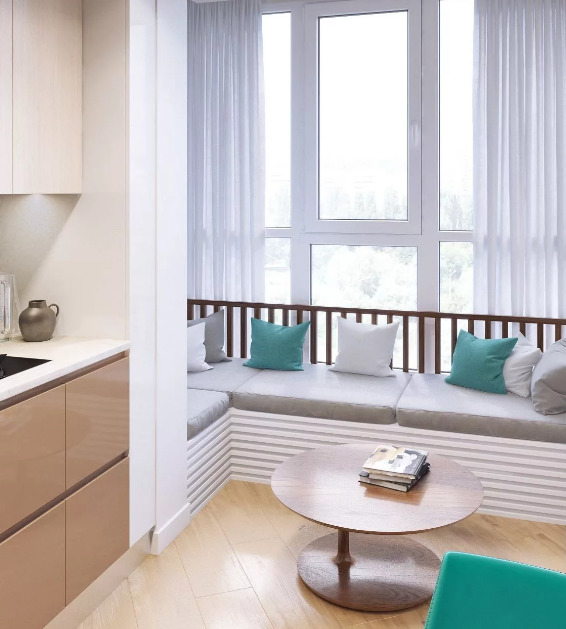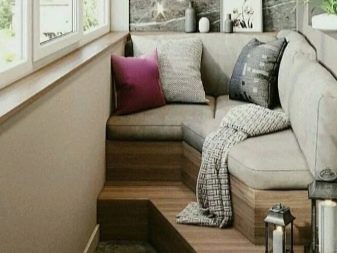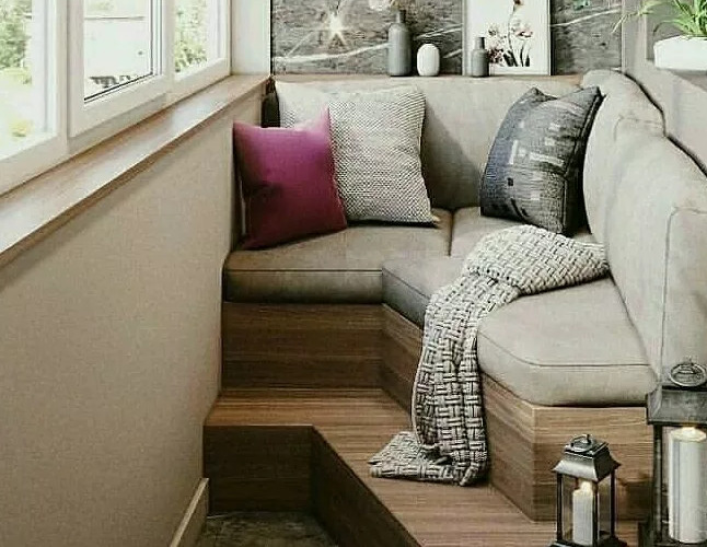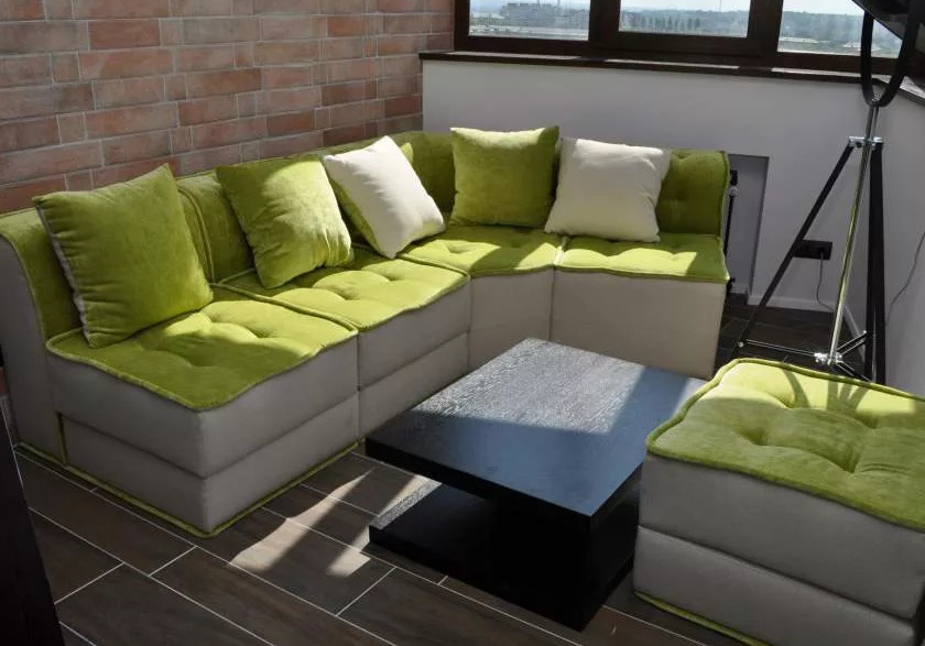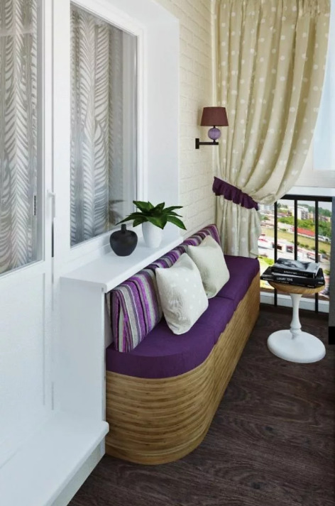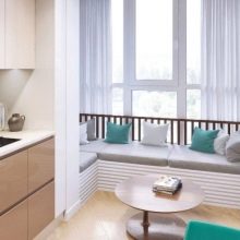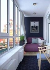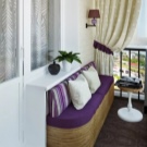 - Disposition. Lorsqu'il est combiné avec une cuisine ou une chambre, l'espace balcon devient une partie de la zone fonctionnelle globale. Dans ce cas, vous pouvez l'équiper de meubles intégrés, notamment de canapés et de divans.