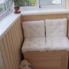 - Des loggias de forme complexe vous permettent d'installer non seulement un petit canapé. Par exemple, s'il y a une saillie le long d'un bord de 205 cm, vous pouvez y installer un pouf simple étroit d'une largeur ne dépassant pas 70 cm.
