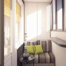 Un balcon isolé nécessite une approche différente. Dans ce cas, vous devez sélectionner les meubles avec un soin particulier, en privilégiant les canapés-coffres et les structures préfabriquées.