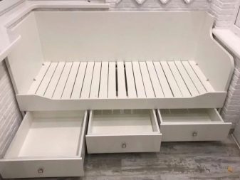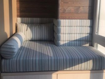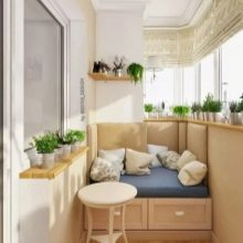 Les canapés intégrés et pliants sur le balcon complétés par des systèmes de rangement peuvent être très différents, mais ils portent toujours une charge fonctionnelle importante. Lors de leur choix, vous devez privilégier les modèles de haute qualité et durables, ainsi que vous fier à vos propres préférences et au niveau de confort souhaité.