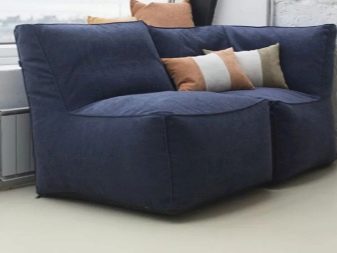 Ce type de canapé ressemble plus à un canapé, n'a ni dos ni côtés, seulement un siège rabattable. Des coussins moelleux remplacent ces éléments, vous permettant de changer la configuration, de varier le niveau de confort. Le plus souvent, les canapés intégrés sont placés le long d'un mur transversal ou d'une cloison - cela permet d'économiser considérablement de l'espace libre. De telles structures ont généralement une base sous la forme d'un piédestal, à l'intérieur duquel vous pouvez ranger les devoirs ou d'autres objets nécessaires. Ils sont souvent placés par paires le long des murs opposés.