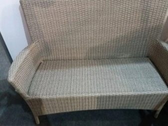 - Du rotin. Cette option convient aux balcons ouverts et semi-ouverts. Le design en osier du canapé résiste à l'humidité, il tolère même l'hivernage à l'air libre. En plus du rotin naturel, son analogue artificiel à base de matériaux polymères est très populaire. Il est facile d'entretien, gardant la surface du canapé en osier propre.