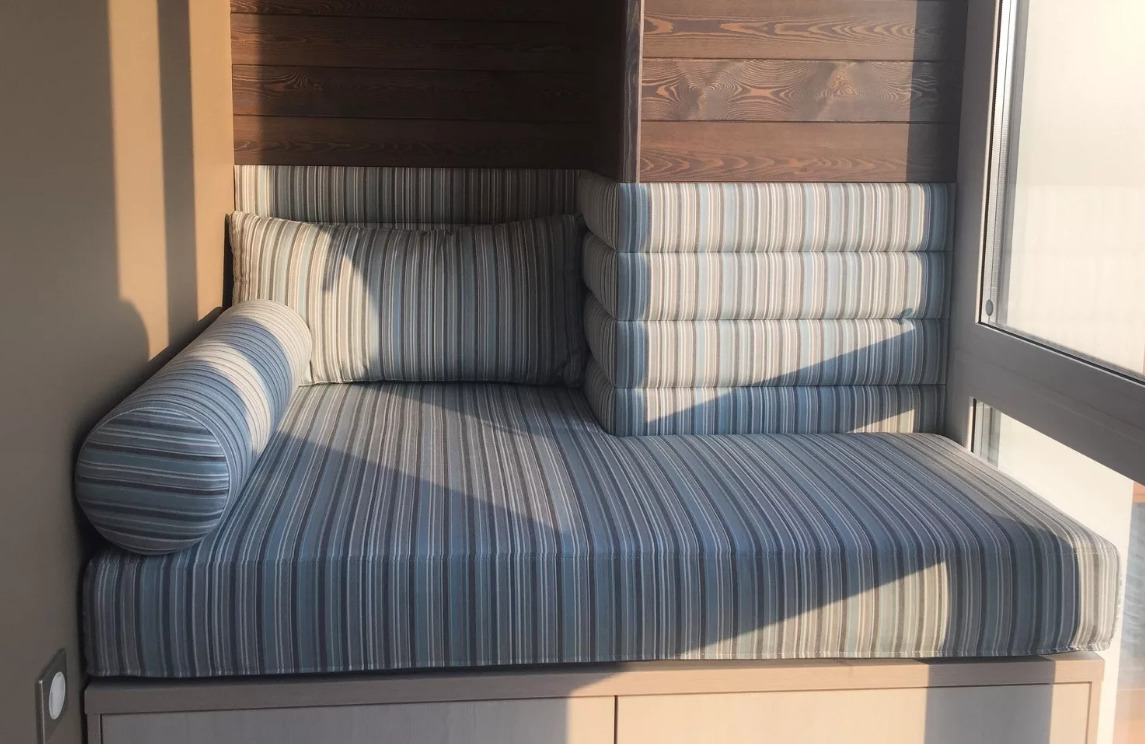 - Du textile. La toile de jute naturelle ou le lin, la tapisserie pratique, le daim artificiel conviennent au balcon. Les tissus caoutchoutés sont utilisés dans le rembourrage des canapés gonflables ou dans les modèles à usage extérieur.