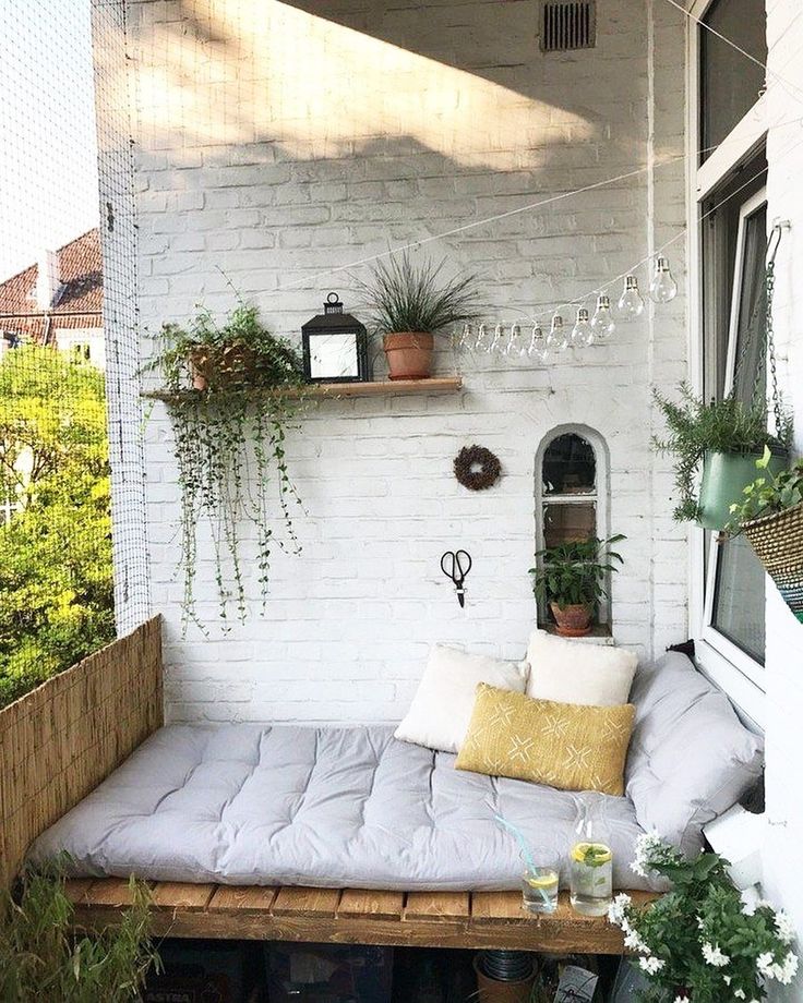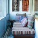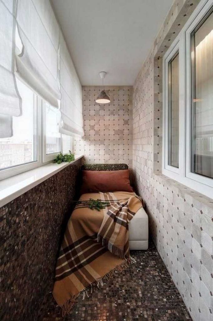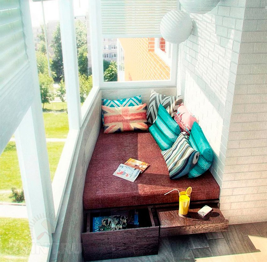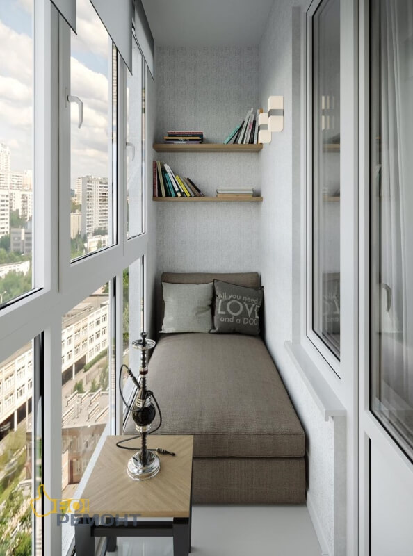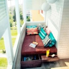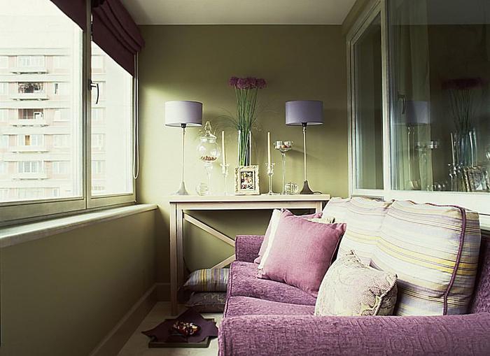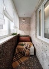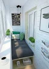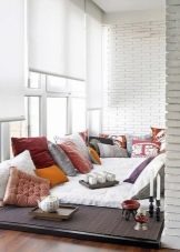 Il existe des milliers d'options. Vous pouvez récupérer l'une des galeries de photos disponibles ici... Par exemple, un mur stylisé comme une brique blanchie à la chaux - des matériaux imitant sont utilisés. Un canapé ou un lit blanc avec un revêtement textile similaire est idéalement combiné avec un tel mur. La gamme du lit ou du canapé fait écho aux teintes des murs du balcon ou de la loggia. Vous pouvez également combiner des nuances contrastées - un canapé vert avec un spectre de murs marron ou noir et blanc.