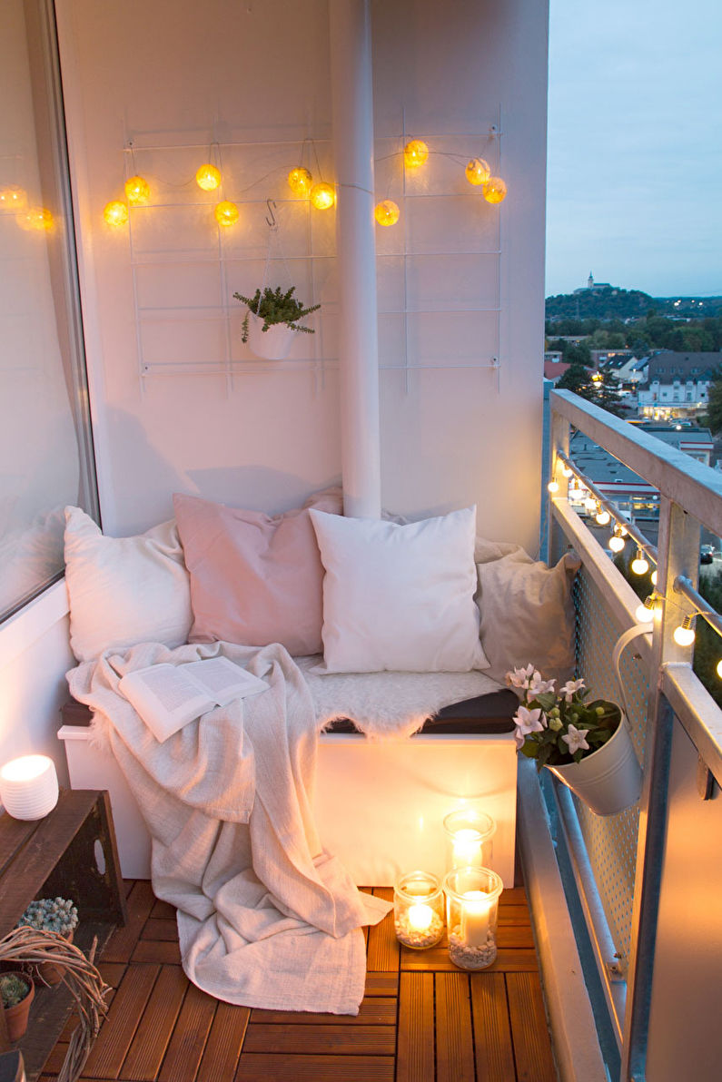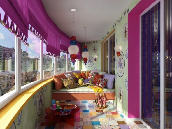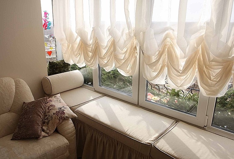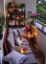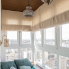Un rideau lumineux ou des stores sont utilisés quand, au contraire, une personne qui dort sur le balcon veut se lever tôt toute seule, sans réveil et sans rappels de ses proches. Si les balcons du gratte-ciel sont orientés vers l'est, une telle solution semblera idéale: une personne se lève au lever du soleil. Aux étages supérieurs des bâtiments, le problème de l'éclairage, en général, est supprimé - vous pouvez, entre autres, ne pas accrocher de rideaux, rideaux et stores, dans ce cas, un maximum de soleil pénètre sur le balcon ou la loggia.