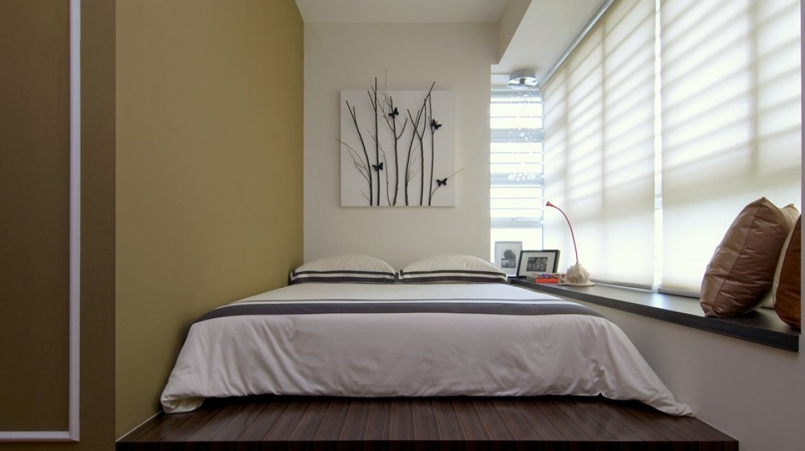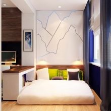 Une version simplifiée de l'agencement de la chambre. Ce n'est pas un problème de le concevoir dans un style minimaliste.