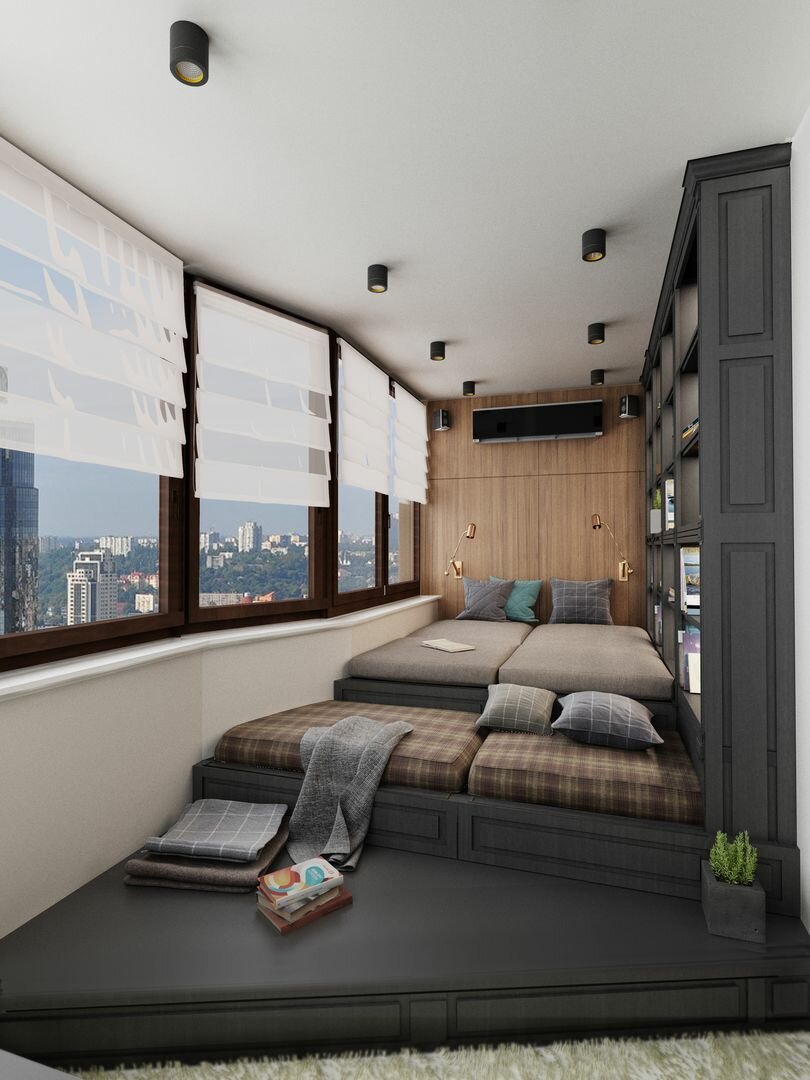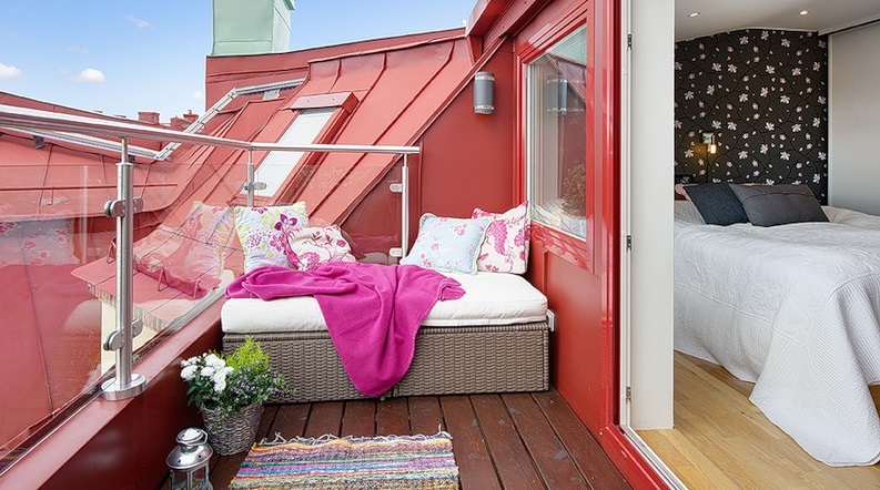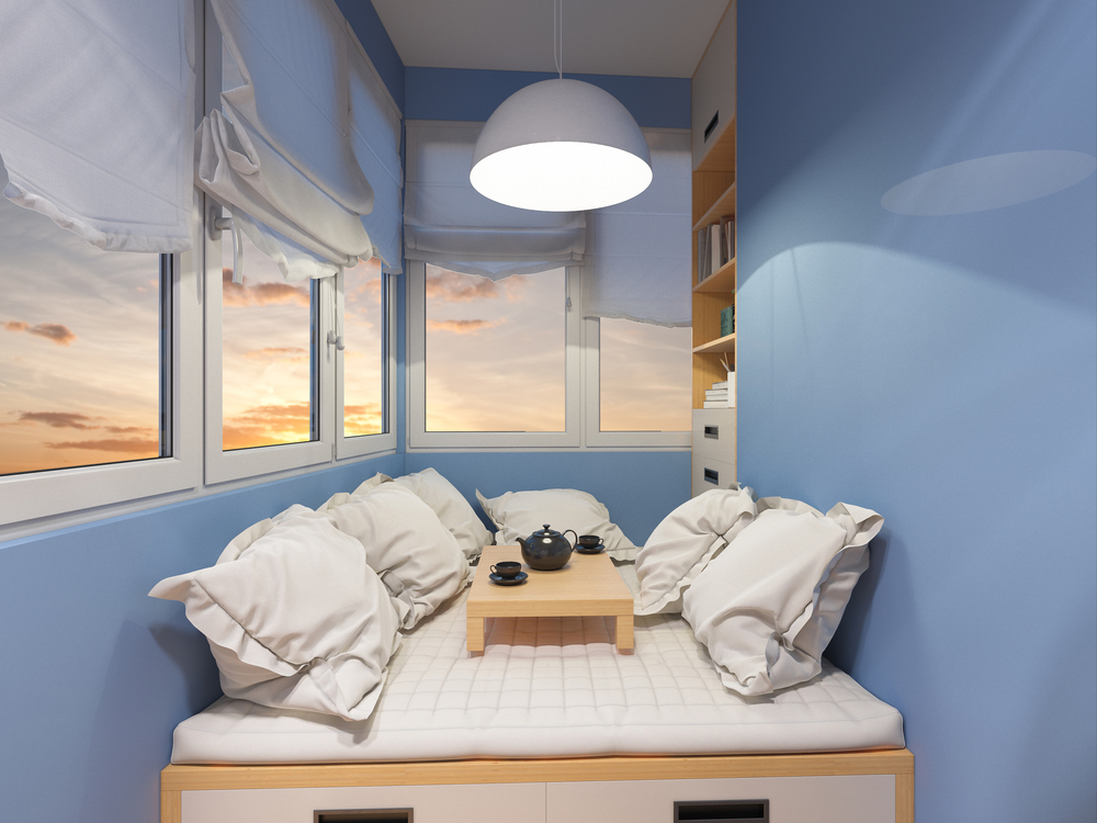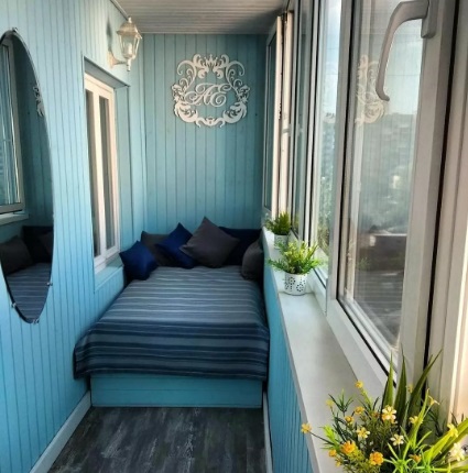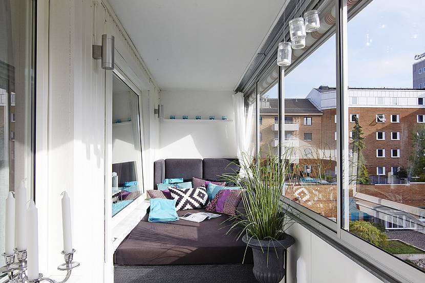 En plus d'un lit (ou canapé), un spacieux balcon ou loggia peut accueillir plusieurs meubles.