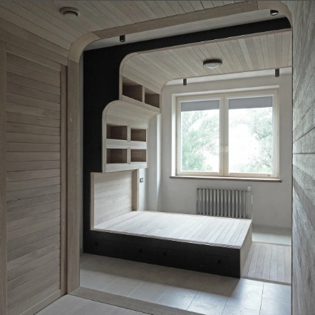 Avec un petit carré (4, 6 m² ou une taille similaire de la surface), un lit ou un canapé occupe au moins 2 m2.