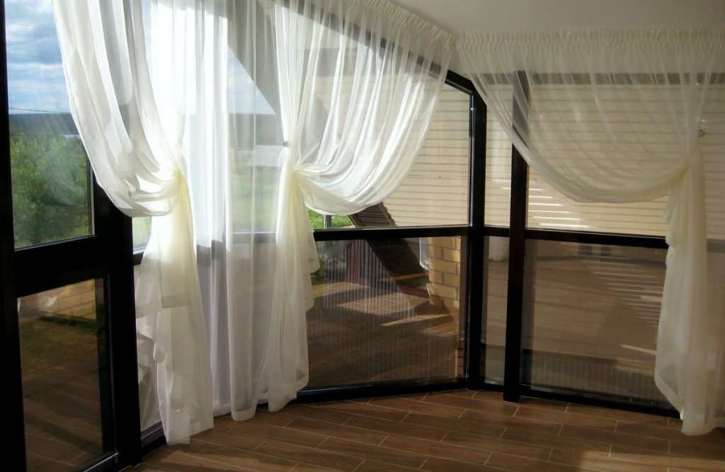 Le rideau du balcon n'est suspendu que lorsqu'une personne qui s'est installée de manière permanente sur le balcon (pour dormir) n'est pas pressée de travailler le matin. Ou, à la veille des vacances, l'urgence de se lever tôt est également absente - la même personne veut dormir plus longtemps. Dans ce cas, le rideau est choisi sombre - il est capable de retarder même la lumière directe du soleil, transformant la lumière du jour sur le balcon ou la loggia en crépuscule. Il est impossible d'obtenir une obscurité énorme pendant la journée sur le balcon, même avec un rideau épais et noir. En été, le rideau de couleur sombre chauffe considérablement, ce qui peut gâcher le sommeil peu après le lever du soleil.