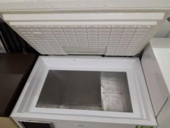 Les coffres sont des caméras à chargement horizontal. En plus, ils sont équipés d'un couvercle métallique vierge qui remplace les portes. De tels modèles sont plus adaptés pour y stocker des produits du même type. Il n'y a pas d'étagères dans cette unité, il y a des paniers amovibles.