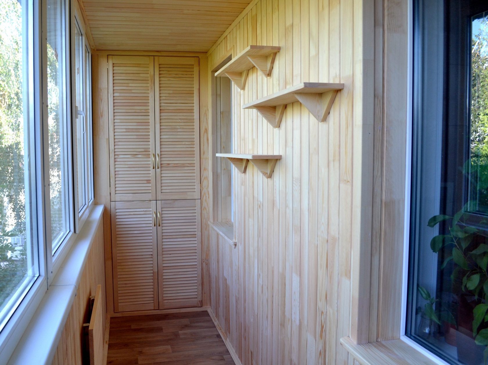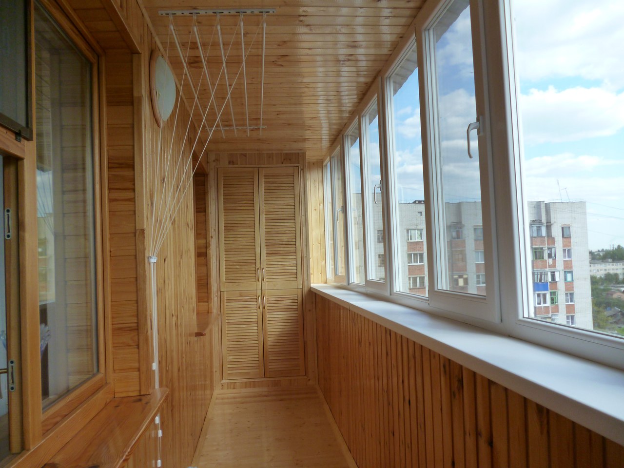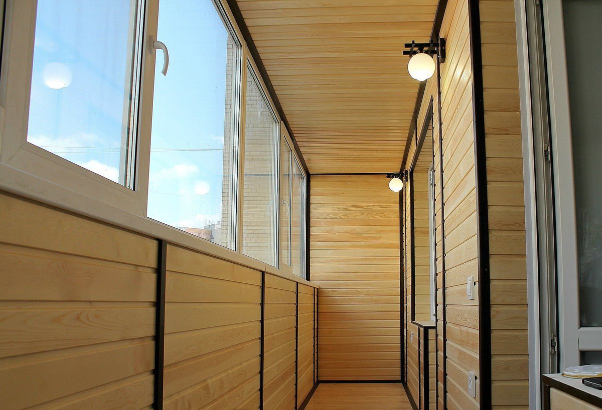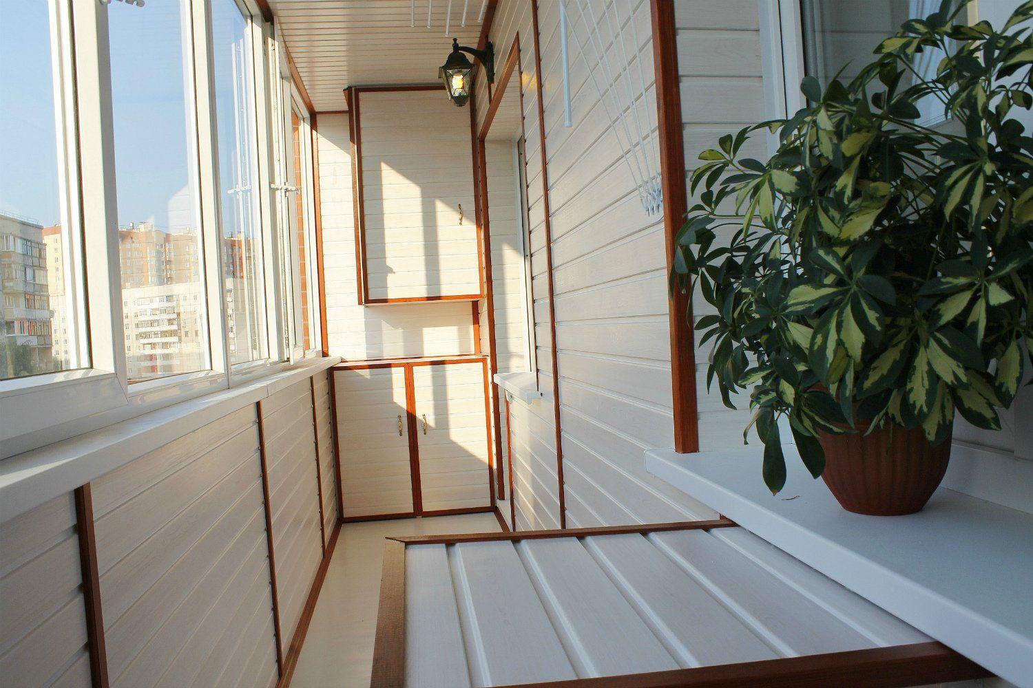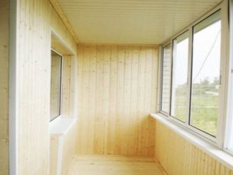 Le matériau de balcon le plus demandé est la doublure et la doublure euro. Ils sont faciles à traiter, n'ajouteront pas de surprises lors de l'installation et sont également polyvalents. Le plafond garni de planches à clin n'a pas l'air pire que les murs, qu'il a été décidé de revêtir du même matériau. Elle a également gainé des armoires et des étagères. La disponibilité du matériel est également intéressante. La doublure est mieux séchée, équipée de rainures de drainage des condensats, ne pourrit pas. Si vous ne violez pas les règles de fonctionnement, la prochaine réparation devra être effectuée dans 20 ans, pas plus tôt.