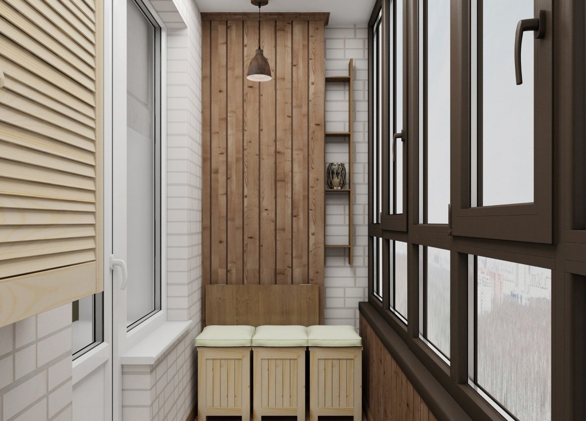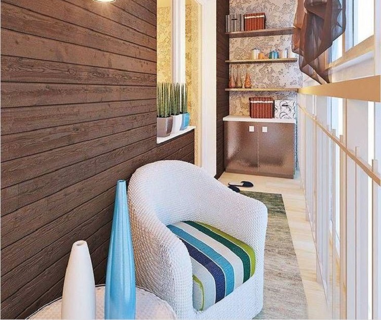 - Néanmoins, le bois est une véritable chaleur et confort, ainsi que la création d'un espace ordonné et complet. Le balcon n'a pas besoin d'être grand pour plaire aux yeux. Et la finition n'a pas besoin d'être chère.