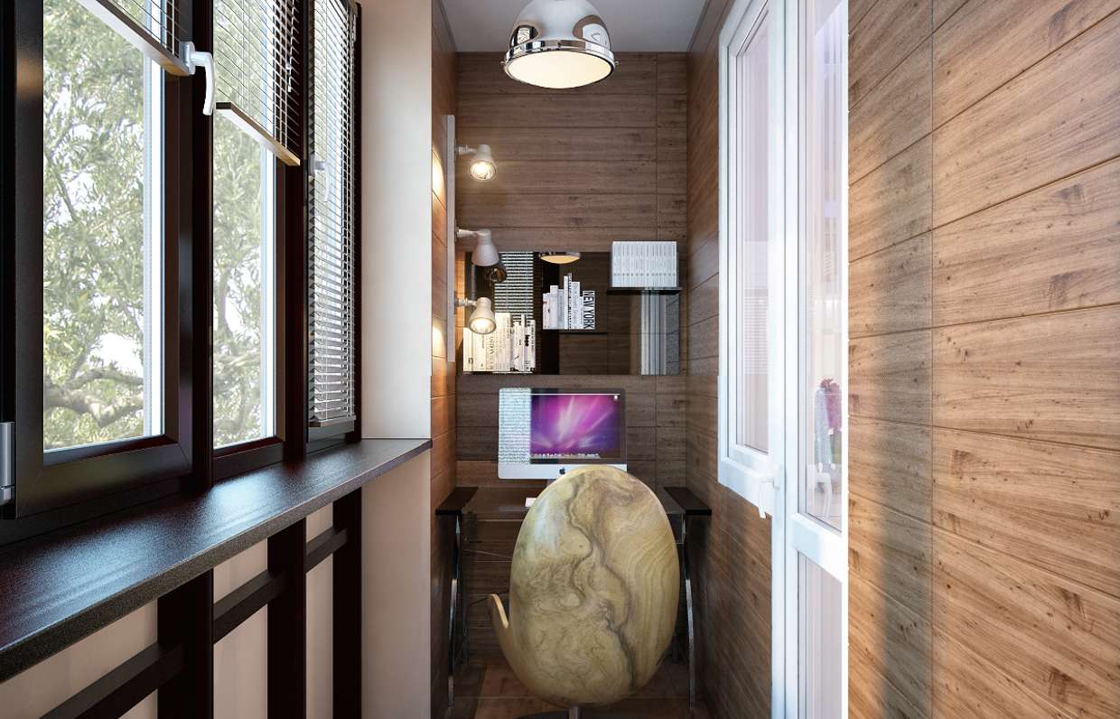 L'utilisation d'un balcon ou d'une loggia comme pièce à part entière, une petite pièce est devenue une tendance certaine. S'il est isolé, la fonctionnalité de ce coin devient beaucoup plus élevée. Et si fini avec une haute qualité, ici vous pouvez équiper un espace de loisirs, une salle de lecture, un bureau. L'une des finitions les plus solides et les plus confortables est le bois.