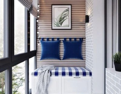 - Le bleu rafraîchissant a également le droit de faire irruption dans l'espace et de montrer ce que peuvent devenir les coins salons doux des balcons modernes.