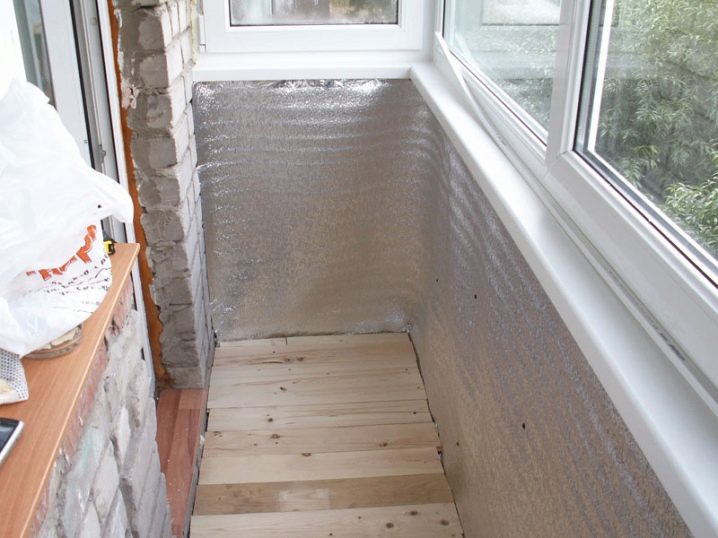 Tout d'abord, le balcon doit être préparé pour l'installation - pour nettoyer les sols de l'ancienne couche de finition, puis examiner l'état des murs. S'il y a de grands espaces, éclats ou fissures, ils doivent être remplis de mousse de polyuréthane ou même de mortier de ciment. Le niveau aidera à évaluer le degré d'irrégularité des sols. S'il y a des dépressions visibles, elles peuvent être nivelées avec du mastic ou du plâtre et les saillies peuvent être renversées avec un marteau ou une hache. Après cela, il est impératif de marcher sur la surface avec une couche d'antiseptique, ce qui aidera à éviter la moisissure.