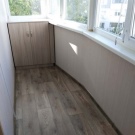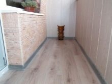 Lors de la décoration d'un espace de balcon, il est d'usage d'utiliser du linoléum avec des textures et des motifs classiques. La version habituelle du revêtement décoratif qui imite le parquet ou la planche a fière allure ici. Il est préférable de choisir des couleurs claires, avec des détails gris et roses.