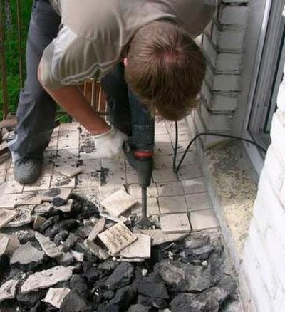 S'il y a un ancien revêtement sur le balcon, il est d'abord démonté. Le sol est débarrassé de la saleté, de la poussière, des traces de débris de construction. La chape en béton est amorcée au rouleau ou à la brosse.