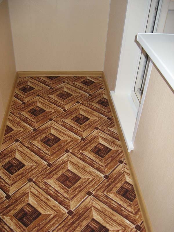 Une solution de compromis peut être le revêtement de sol du balcon en linoléum - un revêtement en rouleau élastique et flexible, adapté aux espaces vitrés et ouverts.
