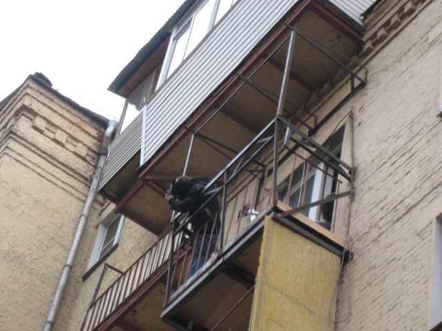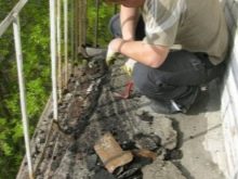 L'ancien revêtement de peinture est retiré le long du périmètre du balcon de la caisse métallique. Après cela, il est à nouveau peint.