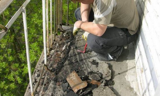 En cas de dommages graves au balcon, une caisse en bois est montée sur la dalle et coulée avec du ciment.