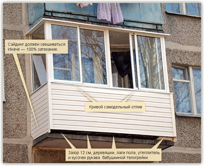 Étant engagés dans l'autoplacage d'un balcon, certains maîtres commettent des erreurs. Ces derniers incluent l'utilisation de matériel non galvanisé, la fixation serrée des panneaux avec des vis autotaraudeuses, la réticence à former des tolérances pour la dilatation thermique. Si vous commettez les erreurs énumérées, le revêtement de revêtement ne durera pas longtemps.