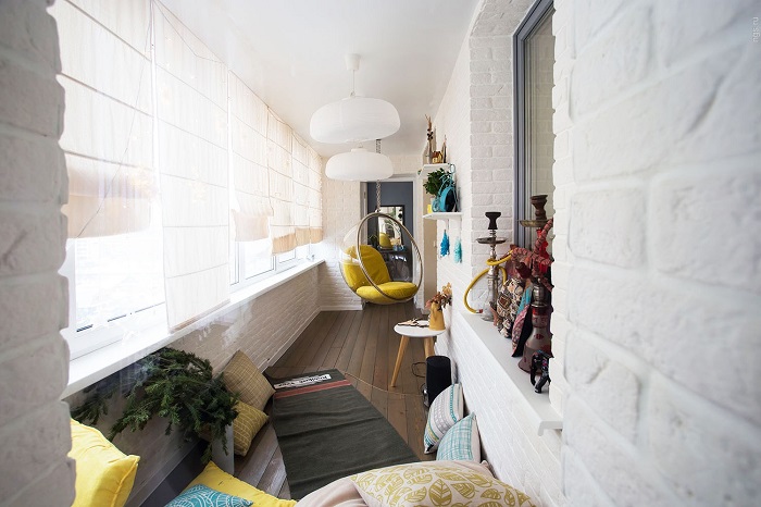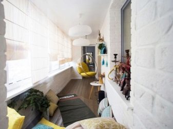Les murs des balcons ne s'intègrent pas toujours dans l'ensemble de l'intérieur. Pour remédier à la situation, vous pouvez peindre la structure. Grâce à cela, non seulement la texture de la brique sera préservée, mais le design deviendra également plus holistique.
