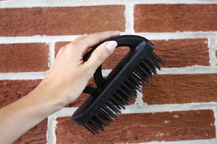 - un petit pinceau est peint sur toutes les coutures du bord des briques;