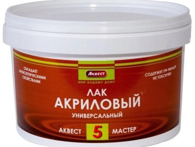 - Laque acrylique. Ces vernis conviennent à une utilisation sur des zones ensoleillées, car ils protègent contre les rayons UV. Le prix relativement bas et une vaste sélection de couleurs et de nuances sont les principaux avantages de l'utilisation de ces variétés. Pour que le vernis se pose uniformément, il doit être dilué avec un solvant ou de l'eau. Le plus souvent, le vernis acrylique est appliqué en plusieurs couches, dont la première assure une fonction protectrice et les suivantes forment une nuance.