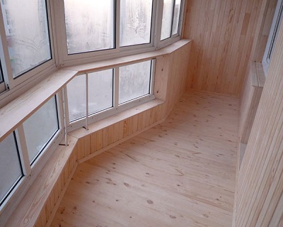 La doublure est en bois naturel. Beau et durable, il séduit l'acheteur qui pense au revêtement du balcon. Le matériau est "respirant", ce qui crée un microclimat favorable sur la zone du balcon. Mais si vous ne saturez pas la doublure avec une composition spéciale, des facteurs négatifs peuvent réduire sa durée de vie.