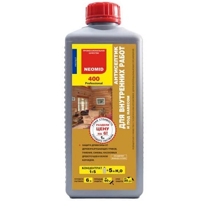 - Néomid 400 - c'est le nom d'un produit concentré de nouvelle génération qui protège l'arbre du ver du bois, des processus de pourriture, de la moisissure. Le liquide ne changera pas la qualité et la texture de la doublure.