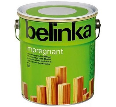 - Belinka enceinte - cet apprêt antiseptique n'a pas non plus de couleur, c'est une excellente prévention des champignons et du bleuissement sur l'arbre. Elle protégera également la doublure du ver à bois. Si une humidité élevée est enregistrée sur le balcon, le choix de cet outil est précis. Vous devez travailler avec lui en portant des lunettes, un respirateur et des vêtements de protection. L'application prendra plus d'une journée, car il devrait y avoir 12 heures de séchage entre les couches.